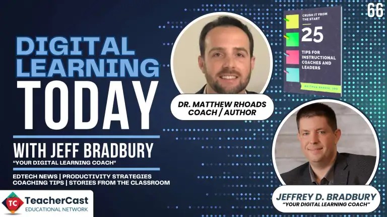 On the Digital Learning Today Podcast, Dr. Matt Rhoads discusses his new book ‘Crush It From the Start: 25 Tips for Instructional Coaches and Leaders’ with host Jeffrey Bradbury. They explore the importance of organization, key themes from the book, and practical tips for instructional coaches. Dr. Rhoads emphasizes the significance of understanding cognitive science, effective coaching strategies, and the integration of technology in education. The conversation also touches on the challenges faced by coaches and the need for reflection and balance in their professional lives.